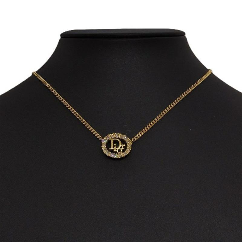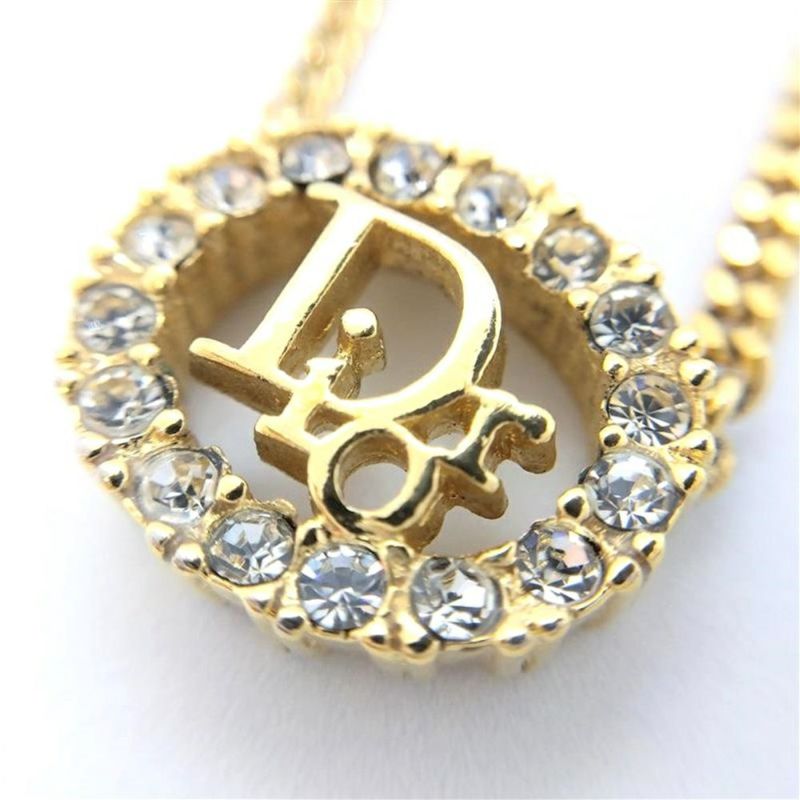 3. クリスチャンディオール Christian Dior オーバルDiorロゴ ラインストーン GP ネックレス ゴールド GERMANY【中古】