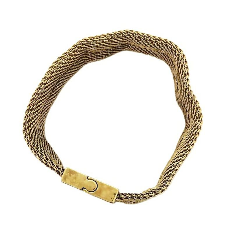 3. グッチ GUCCI ロゴ メッシュ 編み込み ブレスレット ITALY【中古】