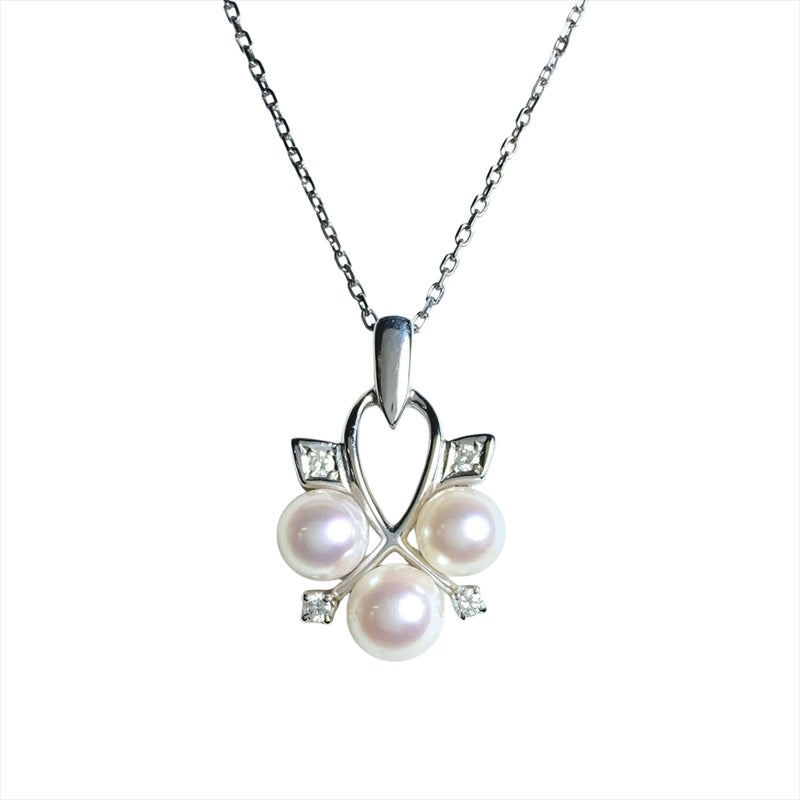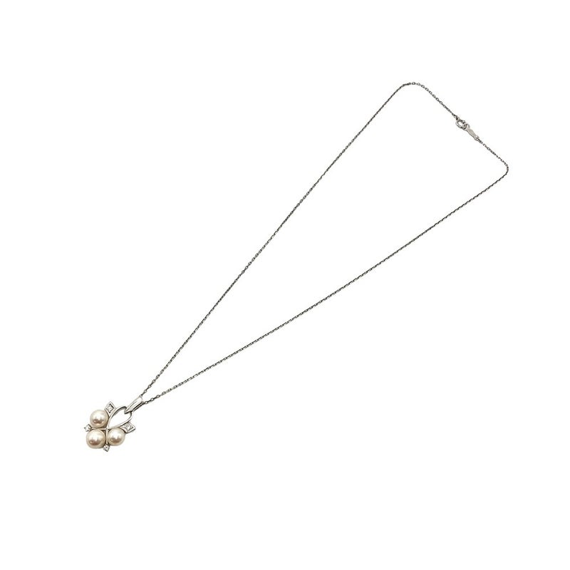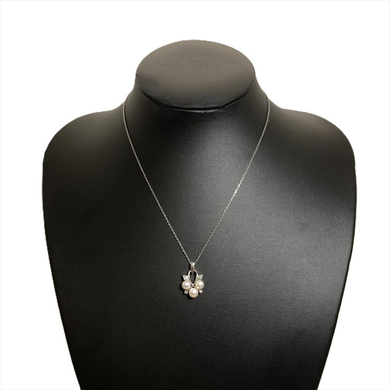 - ミキモト MIKIMOTO パール 6.0-6.5mm ネックレス ダイヤモンド K14WG 5.2g 真珠 ホワイトゴールド チョーカー レディース【中古】
