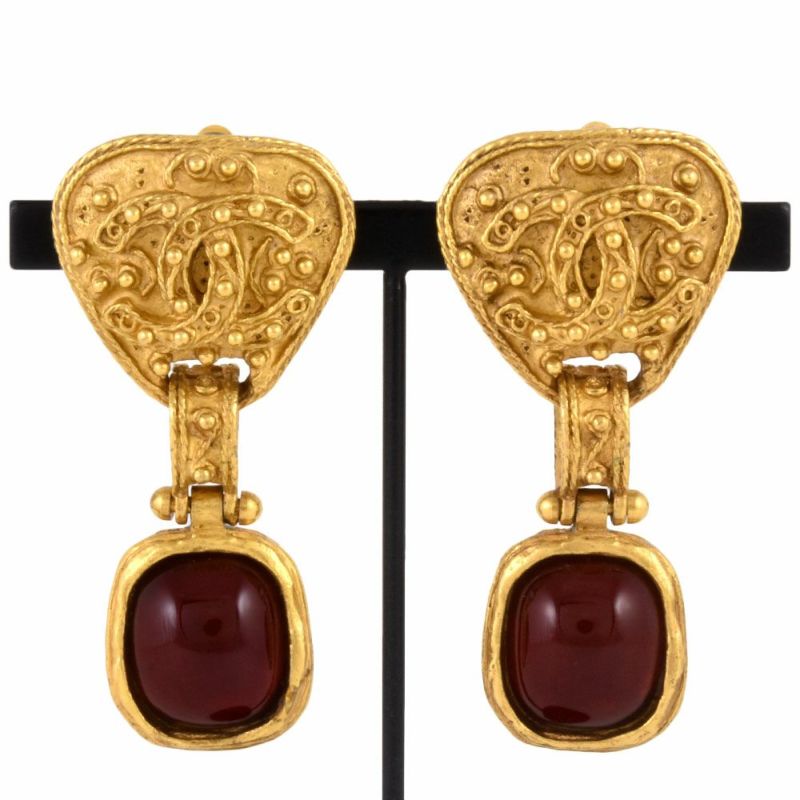 3. シャネル CHANEL グリポア ココマーク イヤリング カラーストーン 94A GP ヴィンテージ アクセサリー レディース【中古】