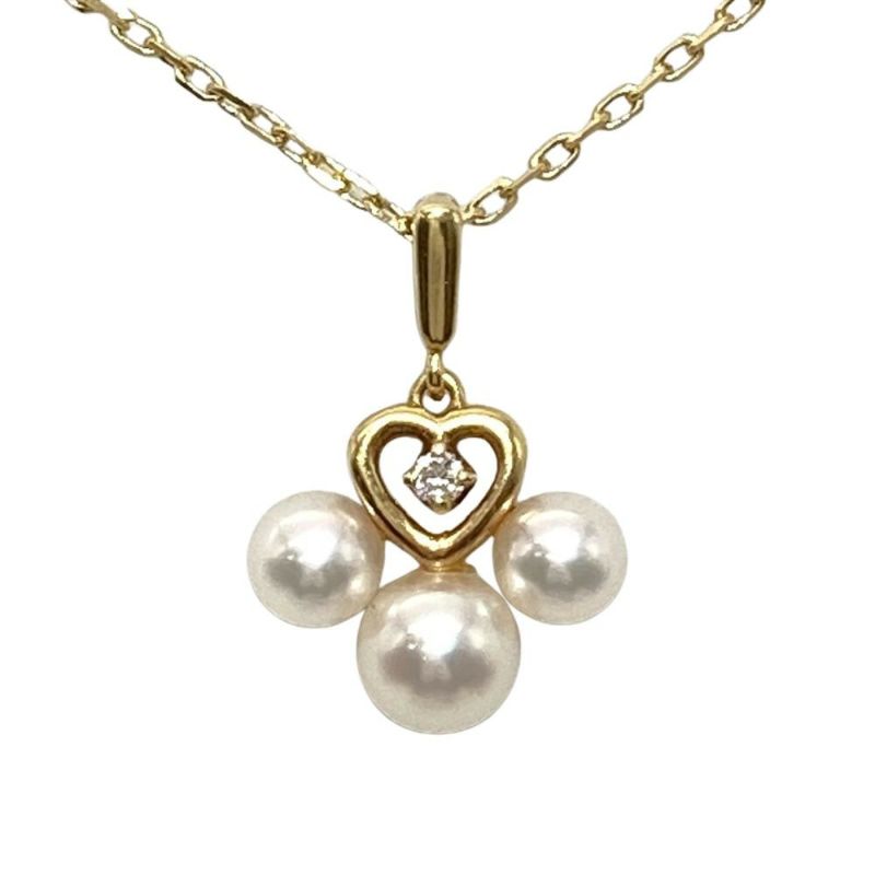 5. ミキモト MIKIMOTO ベビーパール 3P ハート ネックレス K18YG 2.8g 真珠 イエローゴールド 透明石 レディース【中古】