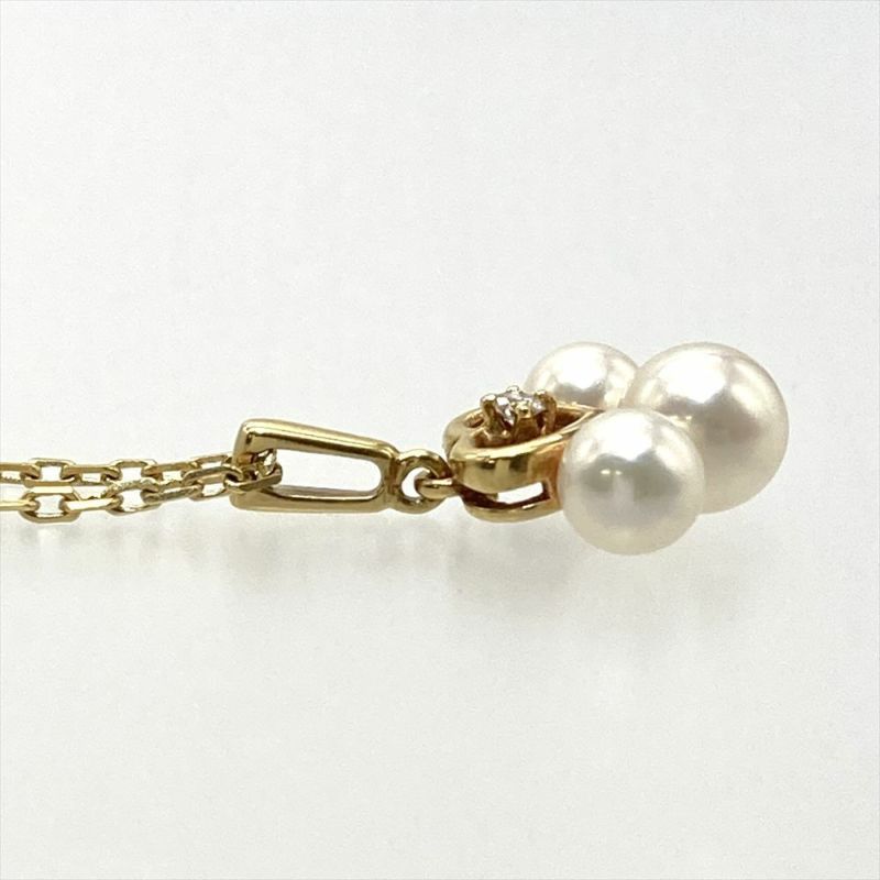 3. ミキモト MIKIMOTO ベビーパール 3P ハート ネックレス K18YG 2.8g 真珠 イエローゴールド 透明石 レディース【中古】