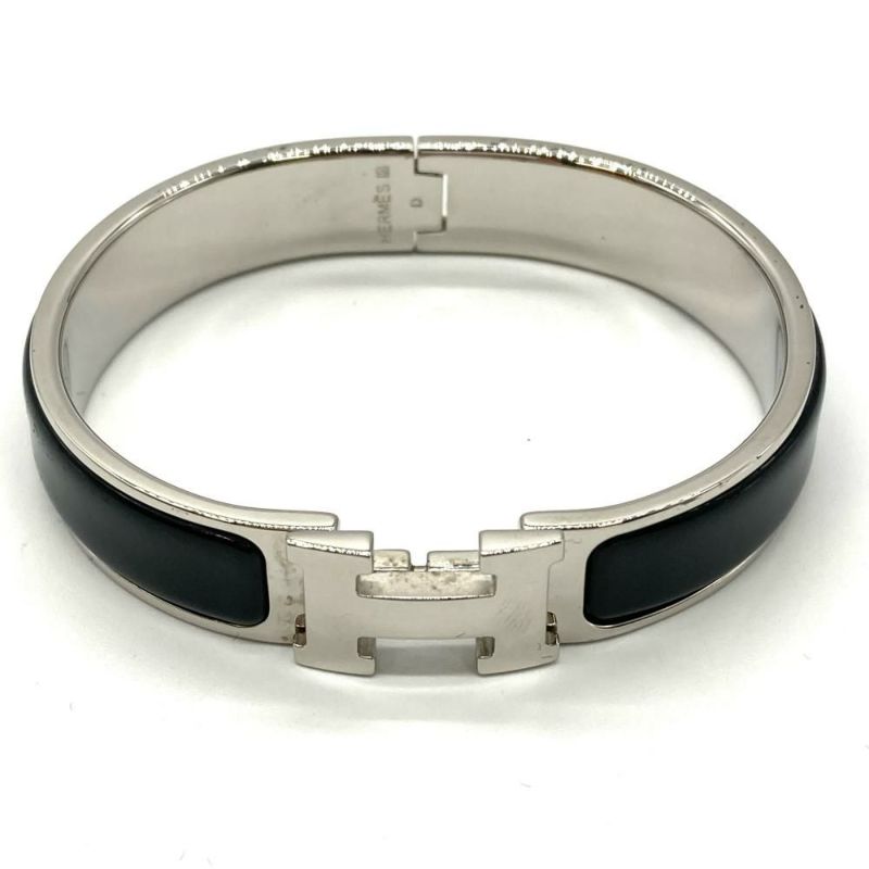 3. エルメス HERMES Hクリック シルバー バングル カフ エナメル ブラック D刻印【中古】