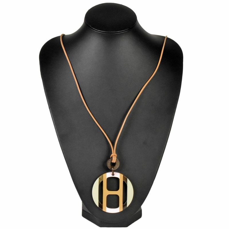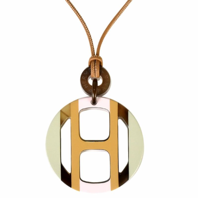 3. エルメス HERMES H エキップ ネックレス バッファローホーン レザー レディース【中古】