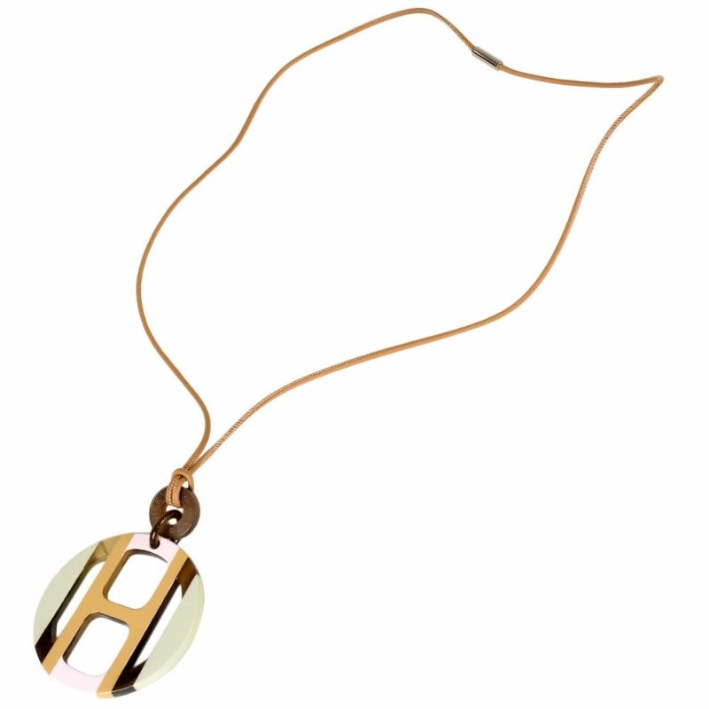 4. エルメス HERMES H エキップ ネックレス バッファローホーン レザー レディース【中古】