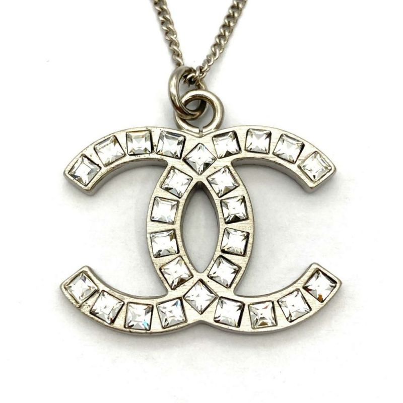 シャネル CHANEL ココマーク ネックレス メタル ラインストーン シルバー B11 A【中古】