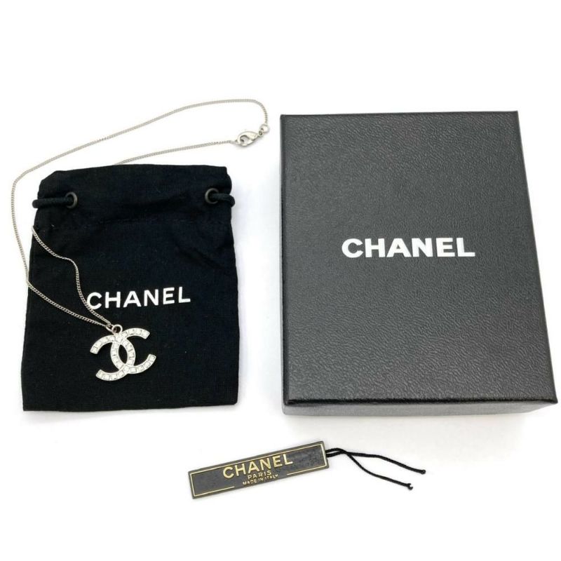 3. シャネル CHANEL ココマーク ネックレス メタル ラインストーン シルバー B11 A【中古】