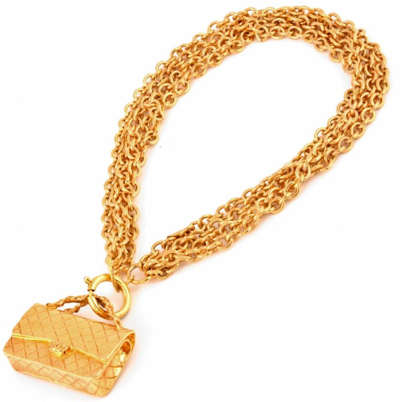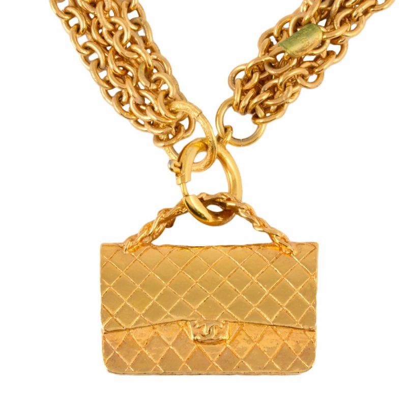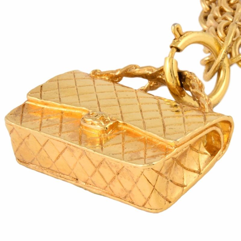 3. シャネル CHANEL バッグ マトラッセ モチーフ ペンダント ネックレス GP ゴールド 76cm ヴィンテージ レディース【中古】