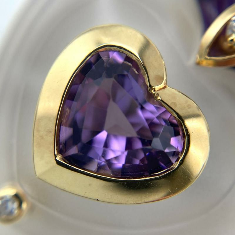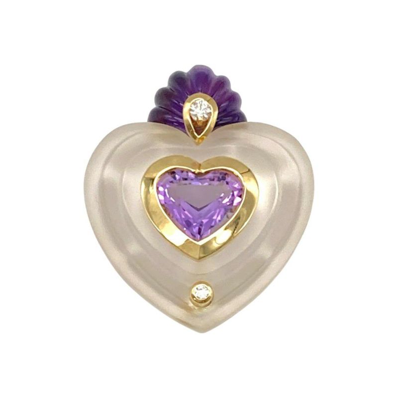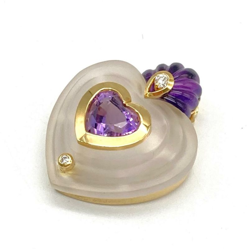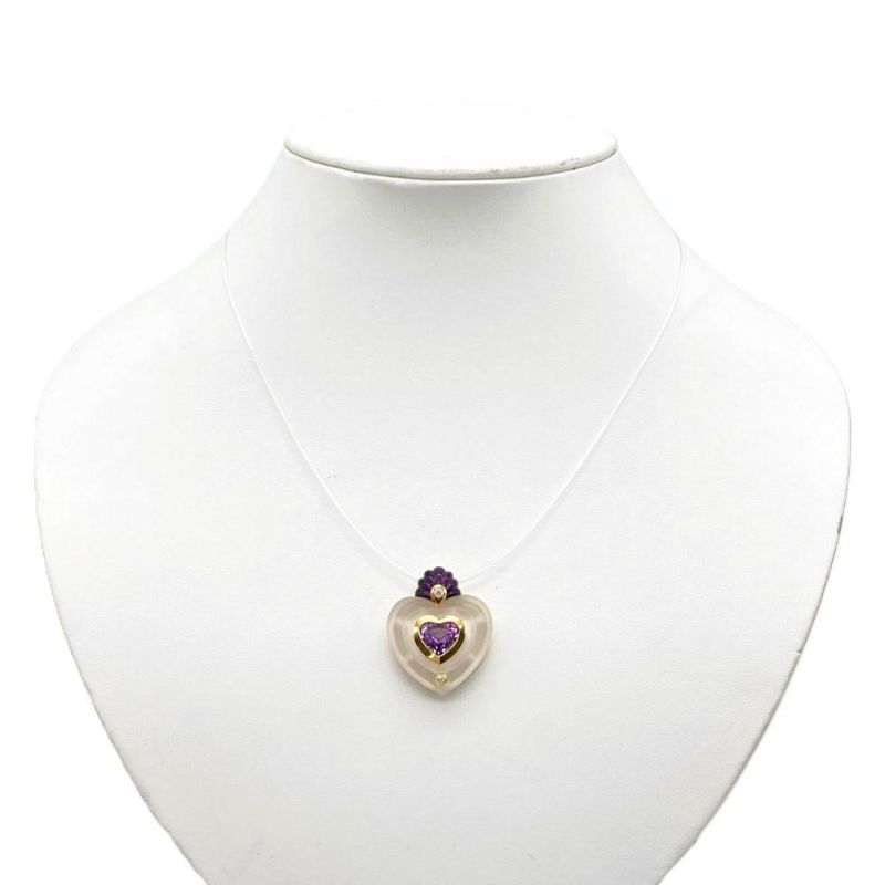 ポンテヴェキオ Ponte Vecchio ハートモチーフ ペンダントトップ ダイヤモンド 0.06ct K18YG 10.8g パープル ゴールド【中古】