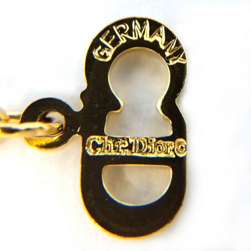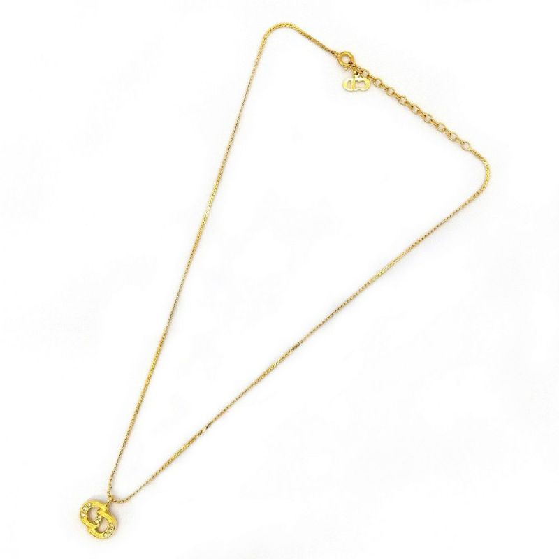 3. クリスチャンディオール Christian Dior CD ロゴ ネックレス ゴールド GP 8P ラインストーン GERMANY 【中古】