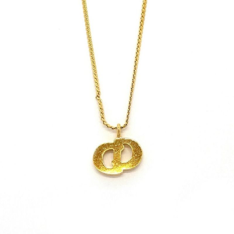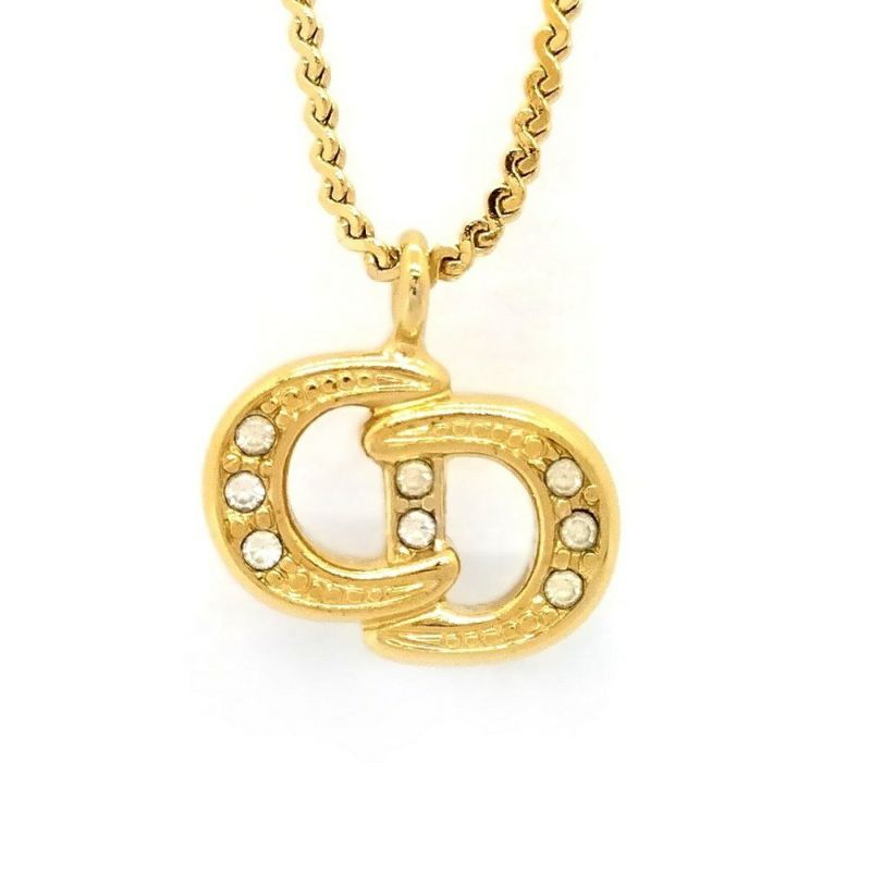 クリスチャンディオール Christian Dior CD ロゴ ネックレス ゴールド GP 8P ラインストーン GERMANY 【中古】
