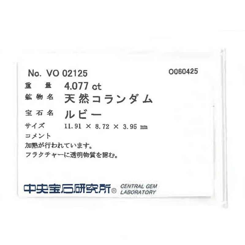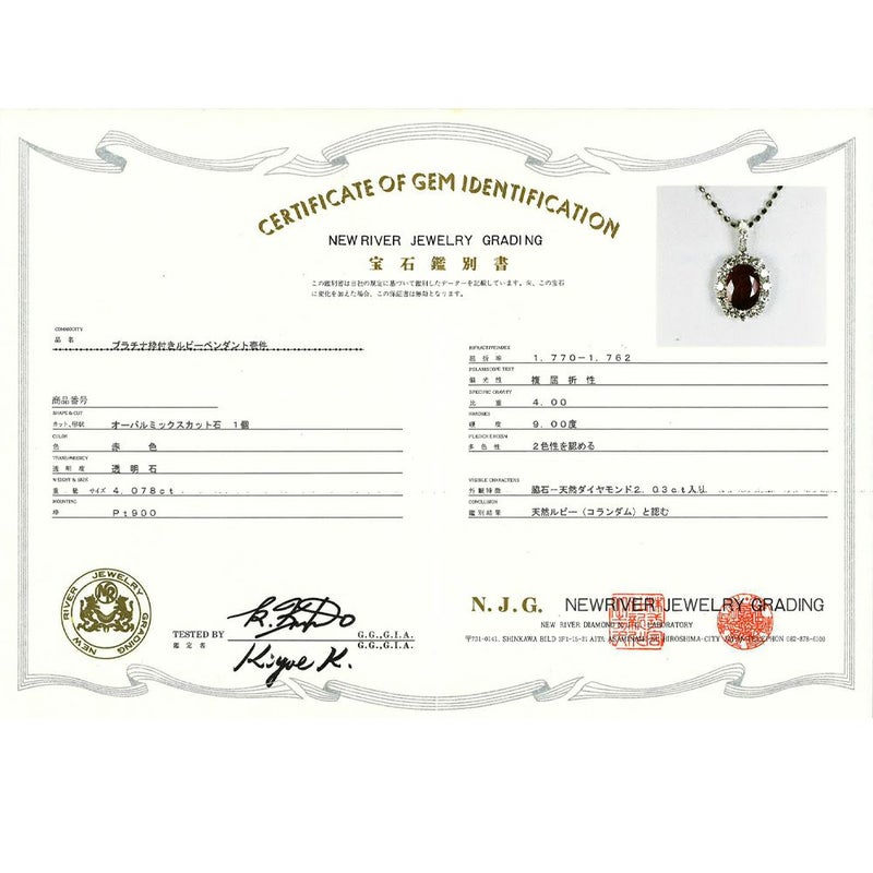 3. ペンダントトップ ルビー 4.078ct Pt900 6.6g レッド ダイヤモンド 2.03ct プラチナ レディース【中古】