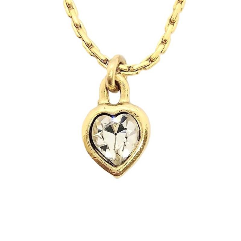 クリスチャンディオール Christian Dior ハートモチーフ 1Pラインストーン GP ネックレス ゴールド GERMANY【中古】