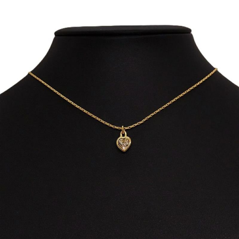 4. クリスチャンディオール Christian Dior ハートモチーフ 1Pラインストーン GP ネックレス ゴールド GERMANY【中古】