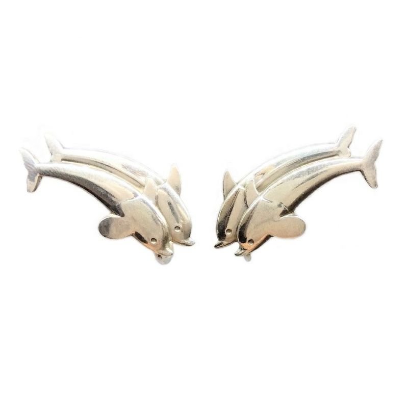 3. ジョージジェンセン Georg Jensen ドルフィンモチーフ イヤリング SV925 シルバー 129 イルカ ネジバネ式 デンマーク【中古】