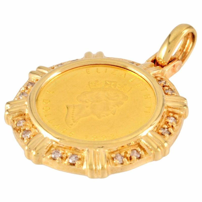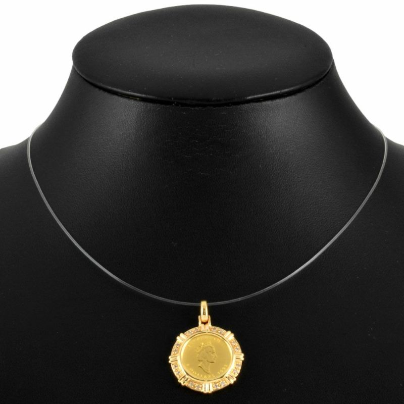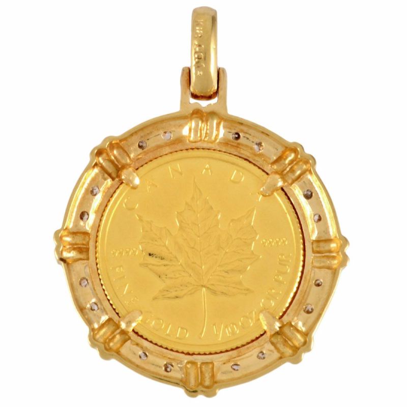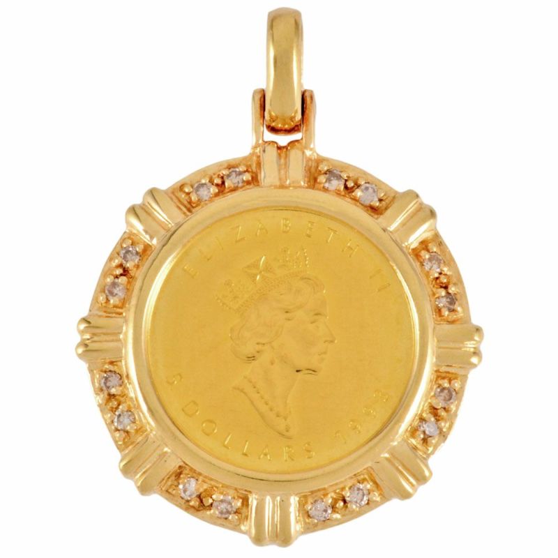 カナダ メイプルリーフ 金貨 1/10oz ペンダントトップ 純金 6.6g K18イエローゴールド ダイヤモンド 0.16ct【中古】