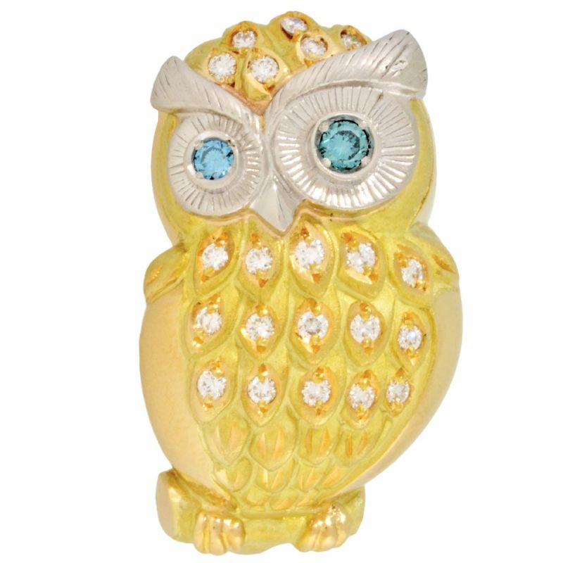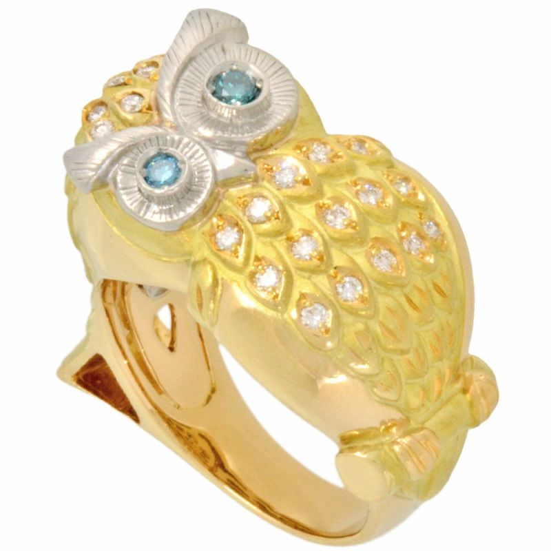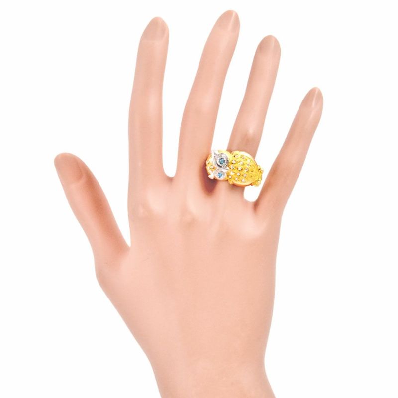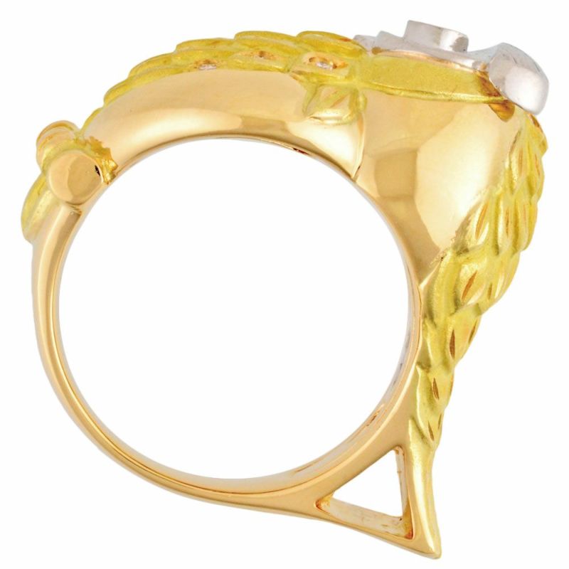 3. 梶光夫 KAJI MITSUO フクロウ リング 指輪 ダイヤモンド 約13号 K18YG 14.7g Pt900 イエローゴールド レディース【中古】