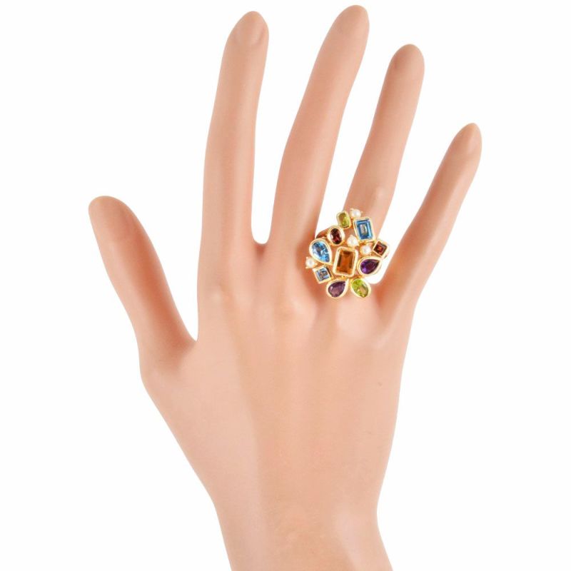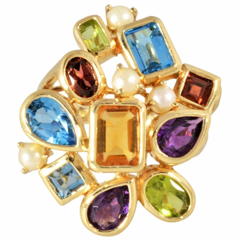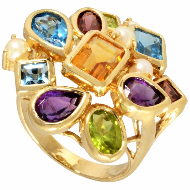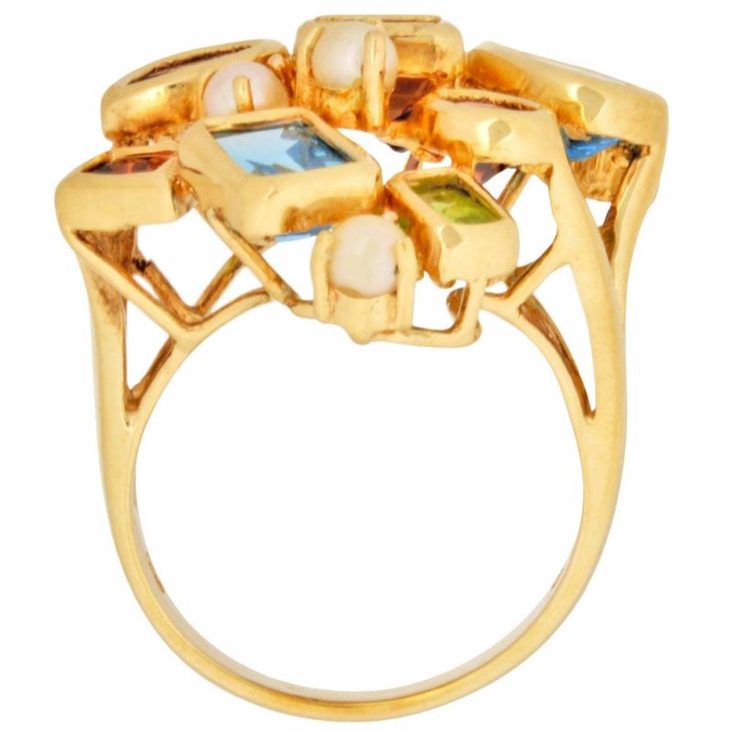 4. マルチカラー天然石 リング 指輪 約12号 K14YG 9.1g【中古】
