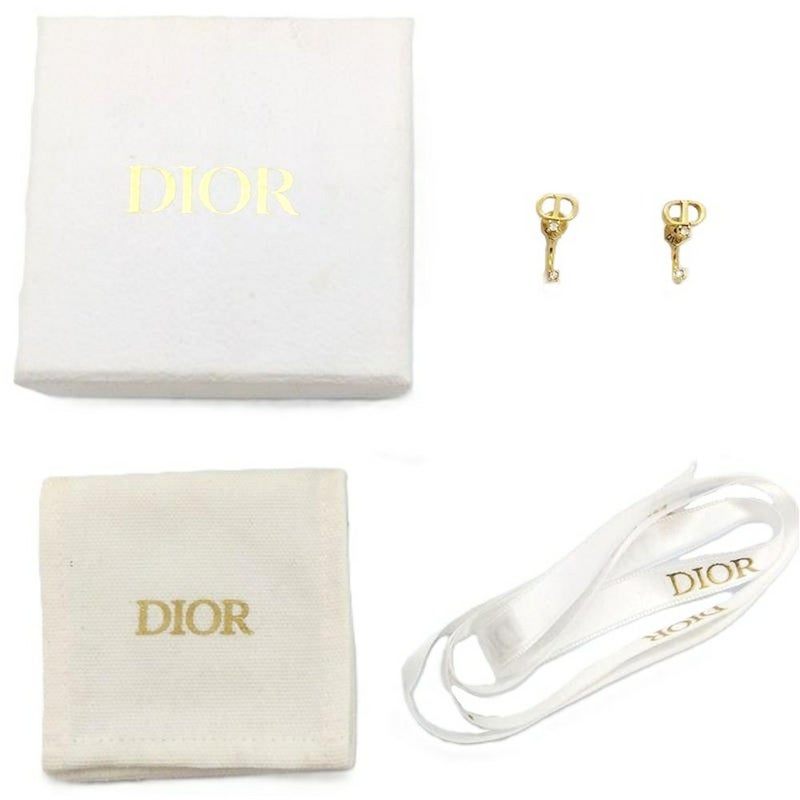 クリスチャンディオール Christian Dior CDロゴ ラインストーン ピアス【中古】