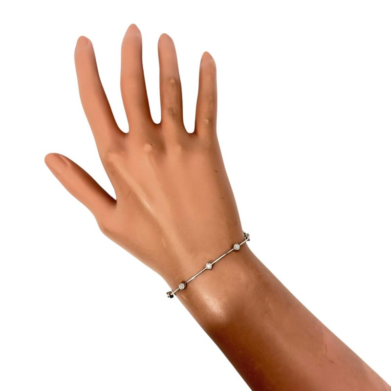 タサキ TASAKI ステーション ブレスレット ダイヤモンド 0.13ct K18WG 3.7g ホワイトゴールド レディース【中古】