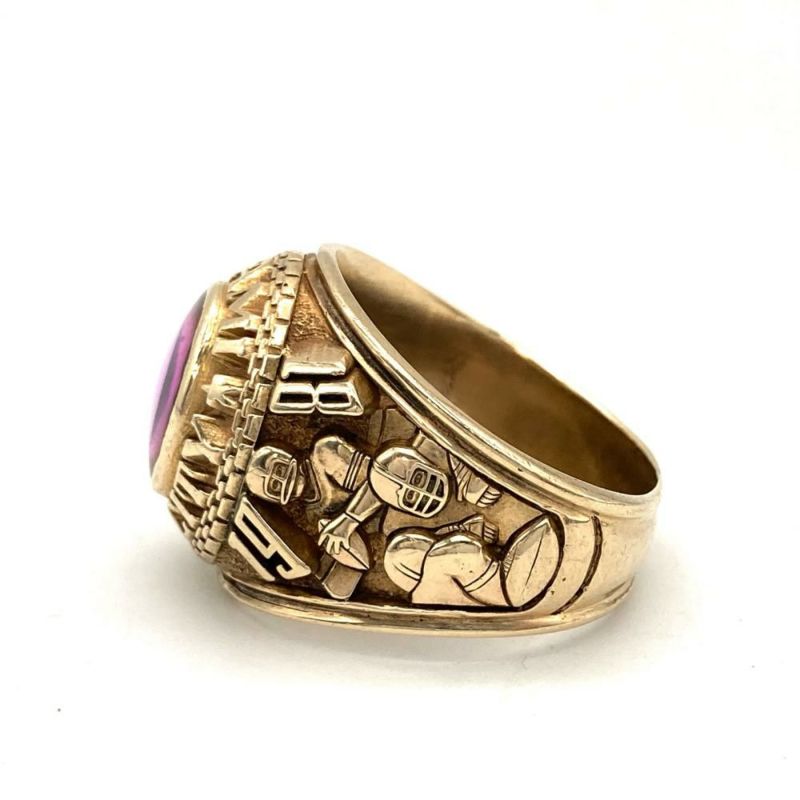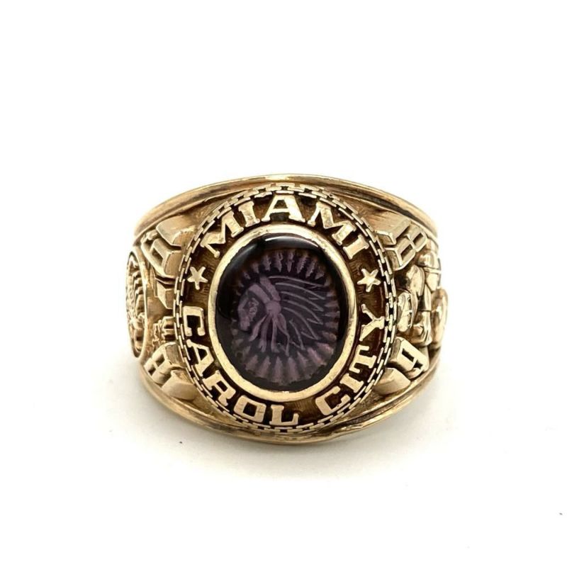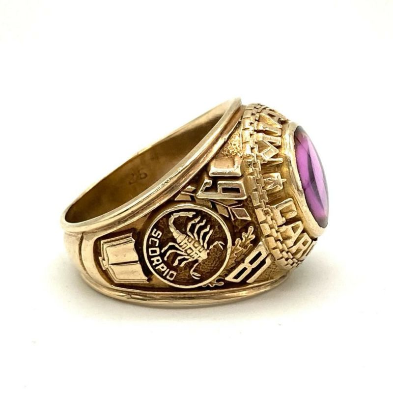バルフォア社製 BALFOUR カレッジリング MIAMI CAROL CITY リング 指輪 紫石 K10YG 14.3g 20~21号 ヴィンテージ メンズ【中古】