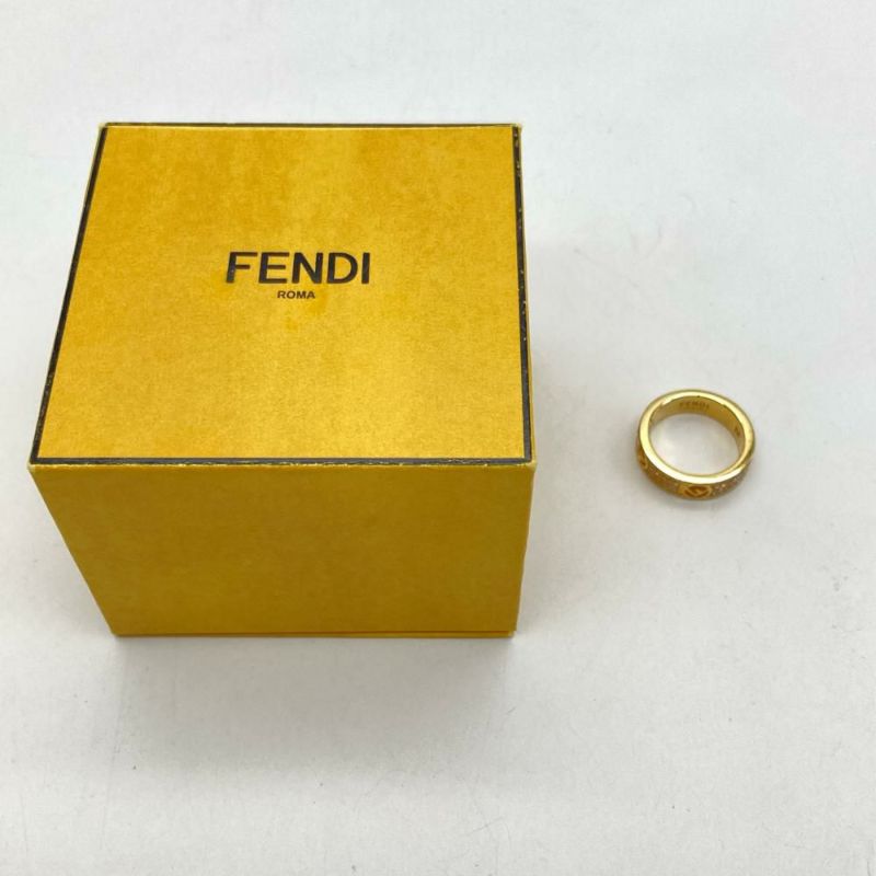 5. フェンディ FENDI エフイズ リング 指輪 M GPg ゴールド ラインストーン【中古】