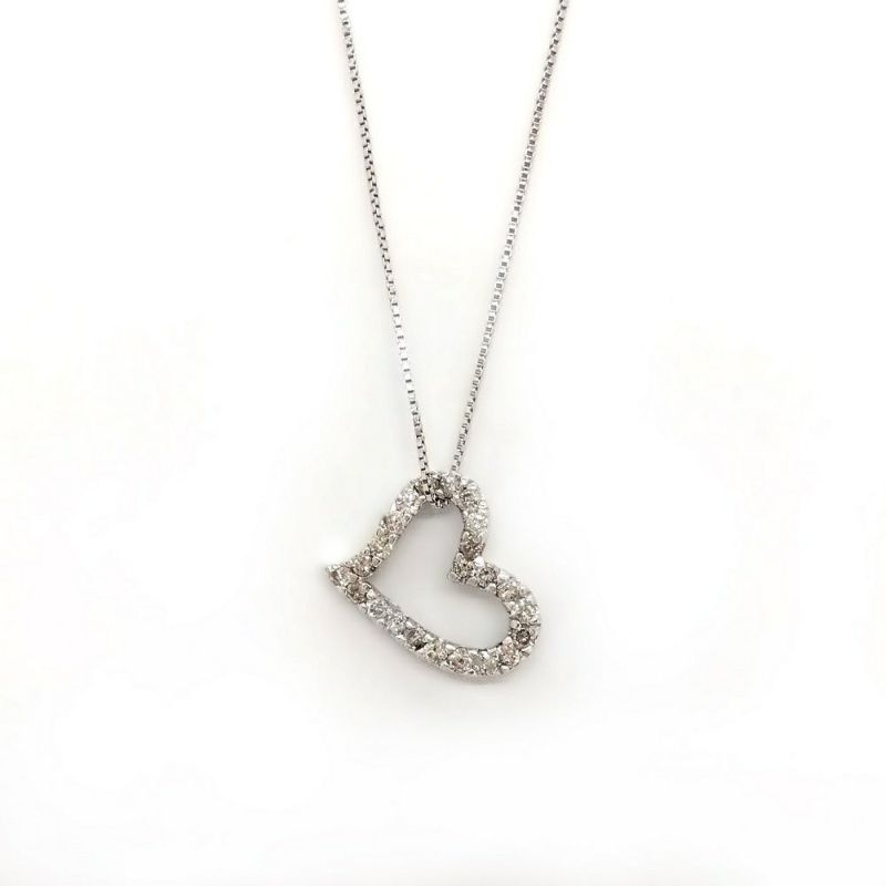 ツツミ TUTUMI ハートモチーフ ネックレス ダイヤモンド 0.20ct K14WG ホワイトゴールド【中古】