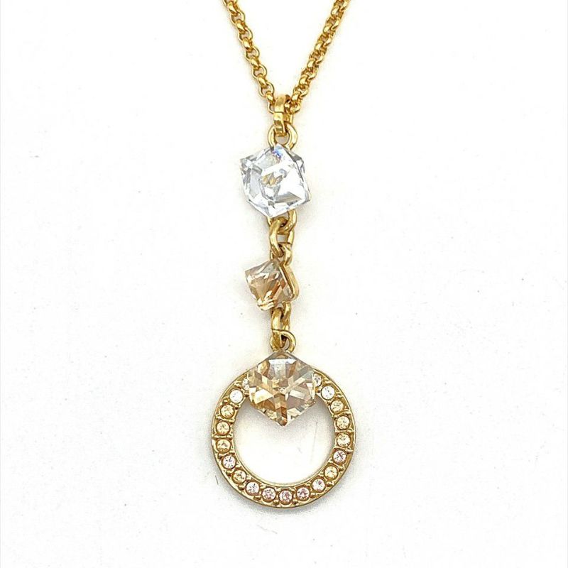 5. スワロフスキー SWAROVSKI サークルキューブ ネックレス メタルg ゴールド レディース【中古】