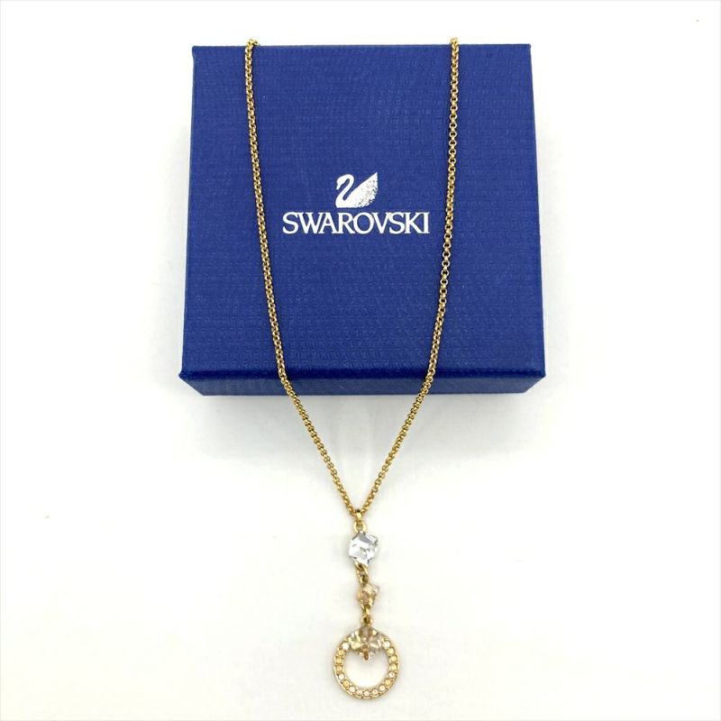 スワロフスキー SWAROVSKI サークルキューブ ネックレス メタルg ゴールド レディース【中古】
