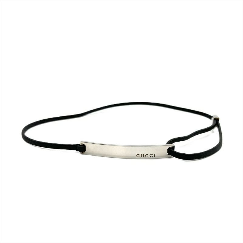 グッチ GUCCI ロゴプレート チョーカー SV925 7.4g レザー【中古】