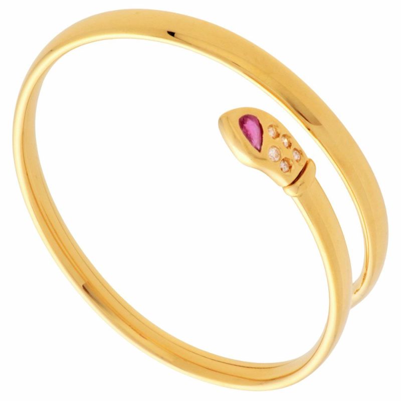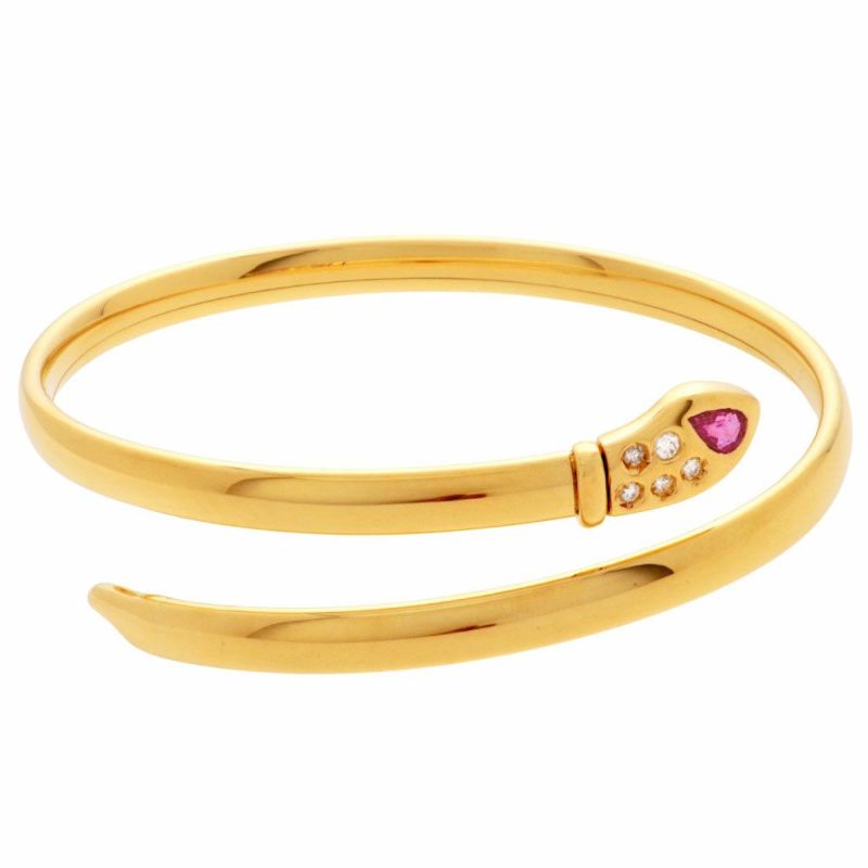 3. ウノアエレ UNOAERRE バングル カフ ダイヤモンド K18YG 17.5g イエローゴールド ルビー レディース【中古】