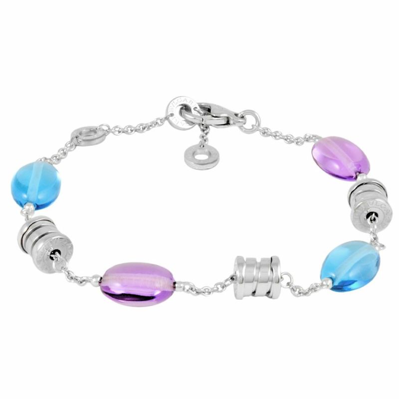 - ブルガリ BVLGARI ビーゼロワン エレメント ブレスレット アメジスト K18WG 13.4g ホワイトゴールド ブルートパーズ レディース【中古】