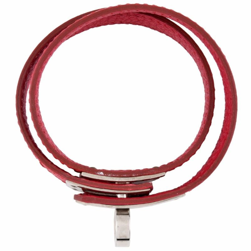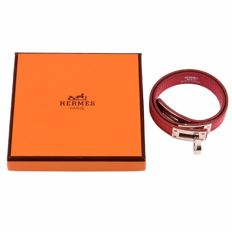 3. エルメス HERMES ケリー ドゥブルトゥール ブレスレット ゴートスキンg □F刻印 レッド シルバー金具 赤系 レディース【中古】