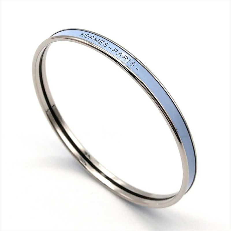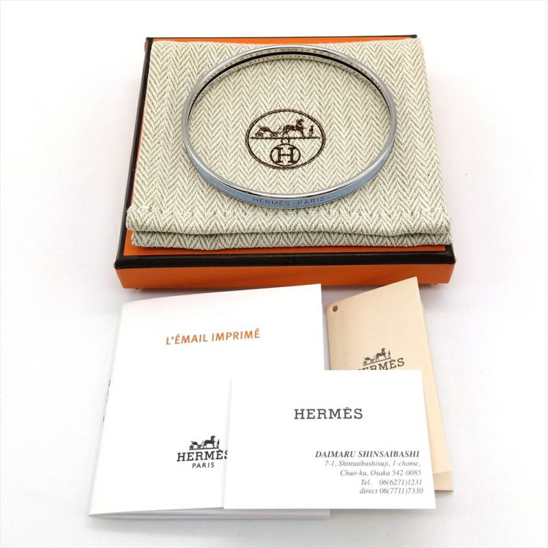 3. エルメス HERMES エナメルブレスレット ユニ バングル カフ シャルドン シルバー金具 ブルー系【中古】