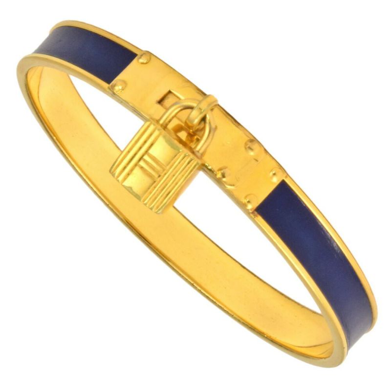 4. エルメス HERMES ケリー バングル ブレスレット ネイビー ゴールド【中古】