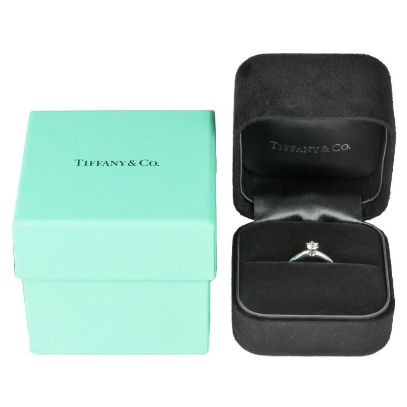 4. ティファニー Tiffany&Co. ソリティア リング 指輪 ダイヤモンド 0.24ct 約9号 Pt950 4.3g プラチナ F/VS1/3EX レディース【中古】