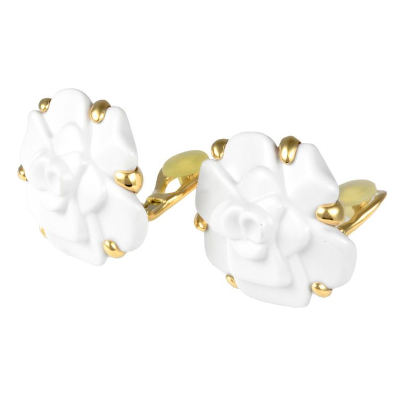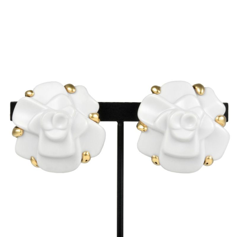 送料無料 新品仕上げ済 シャネル CHANEL カメリア イヤリング ホワイトカルセドニー K18YG レディース【中古】