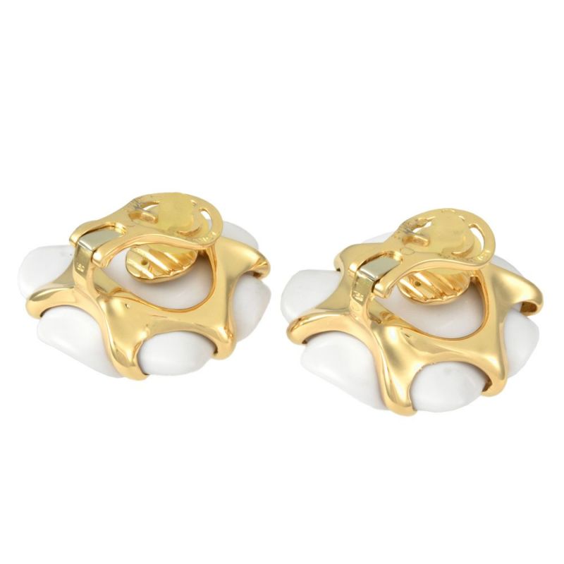 4. シャネル CHANEL カメリア イヤリング ホワイトカルセドニー K18YG レディース【中古】