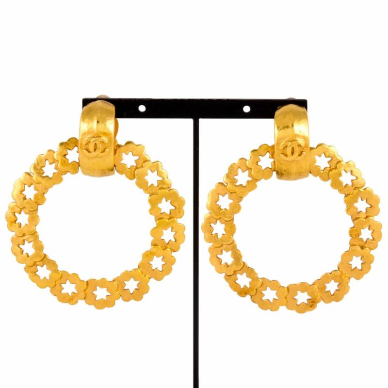 3. シャネル CHANEL ココマーク スター フープ イヤリング 96P刻印 GPg ゴールド ヴィンテージ フラワー レディース【中古】