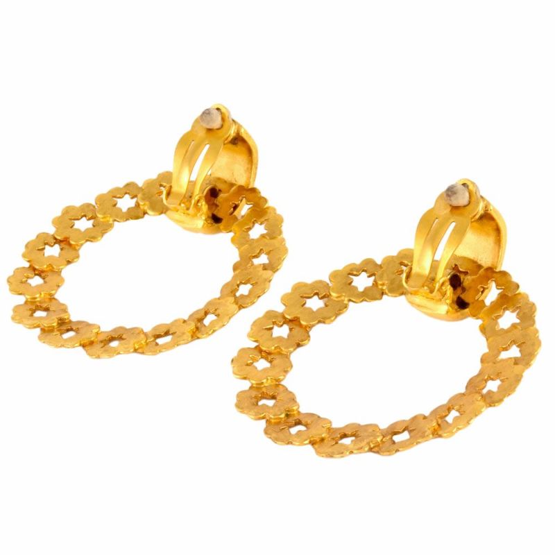 4. シャネル CHANEL ココマーク スター フープ イヤリング 96P刻印 GPg ゴールド ヴィンテージ フラワー レディース【中古】