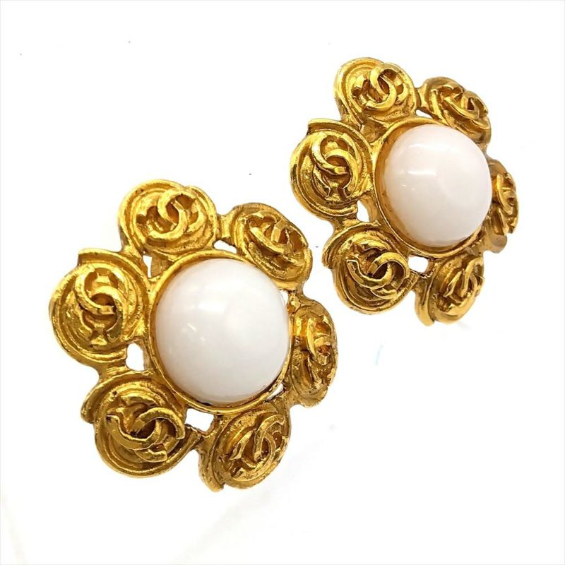 4. シャネル CHANEL イヤリング メタルg 94P ゴールド ココマーク フェイクパール ヴィンテージ レディース【中古】