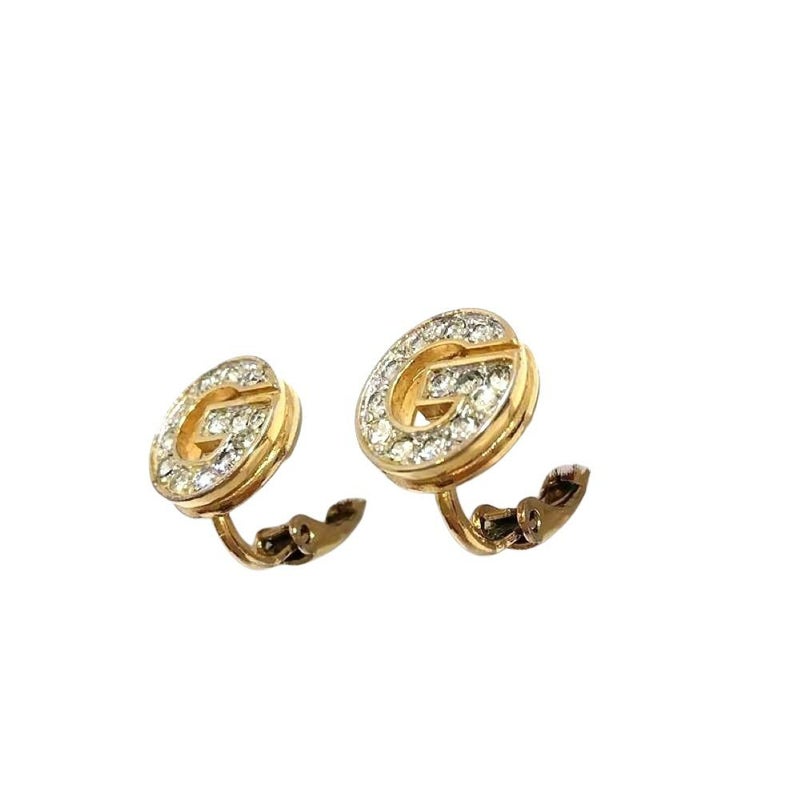ジバンシー Givenchy Gロゴ イヤリング ゴールド GP ラインストーン【中古】