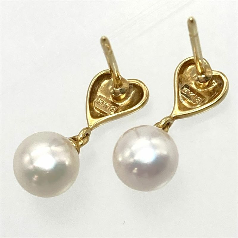 3. ミキモト MIKIMOTO ハート パール 約6mm ピアス K18YG 2.4g 真珠 ステンレス イエローゴールド スイング レディース【中古】