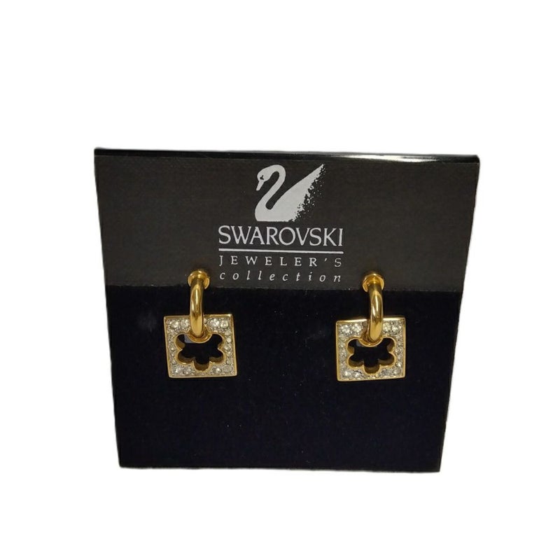 3. スワロフスキー SWAROVSKI スクエア フラワーモチーフ イヤリング ゴールド 訳あり【中古】