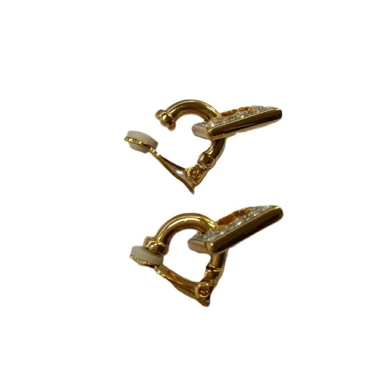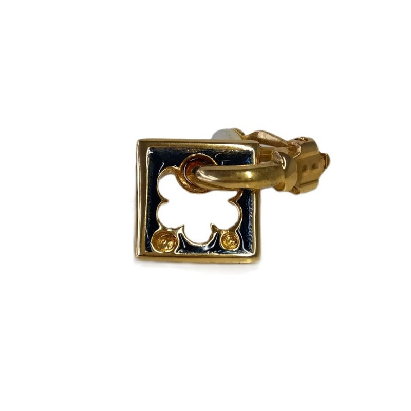 5. スワロフスキー SWAROVSKI スクエア フラワーモチーフ イヤリング ゴールド 訳あり【中古】