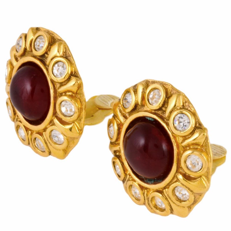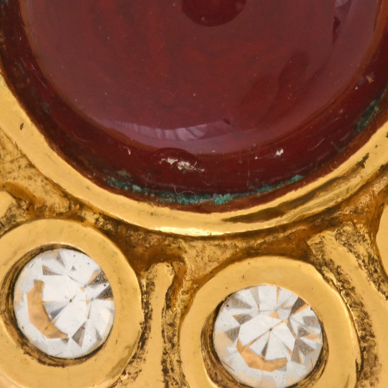 3. シャネル CHANEL グリポア ラウンド イヤリング GP レッド カラーストーン ヴィンテージ アクセサリー レディース【中古】