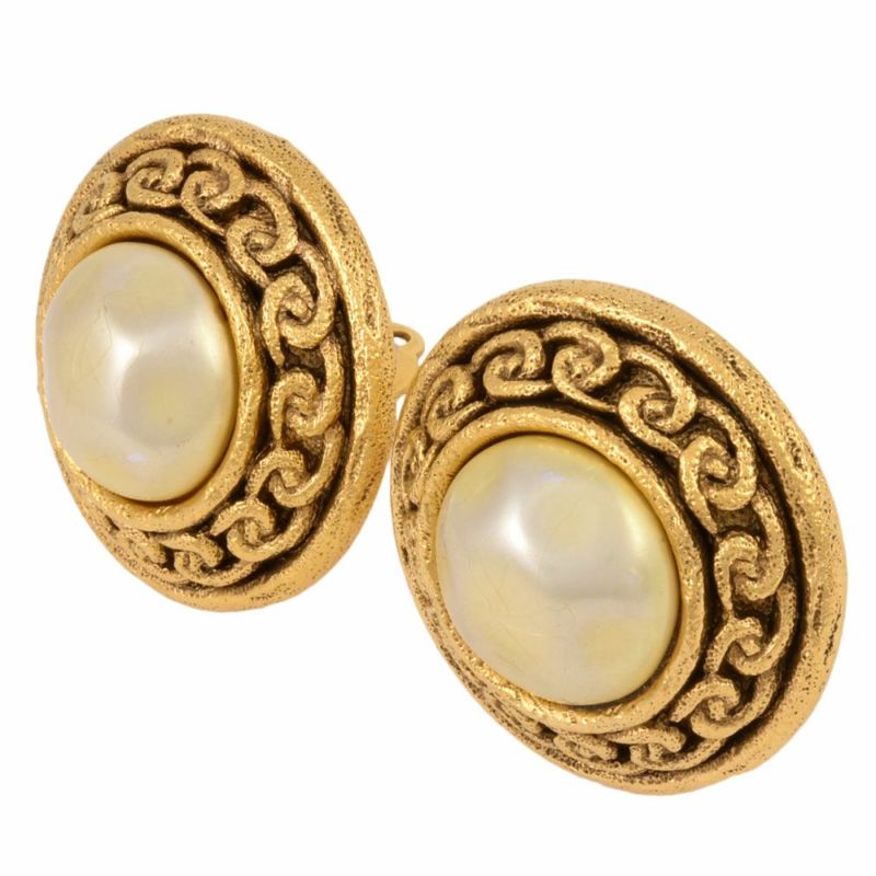 3. シャネル CHANEL フェイクパール イヤリング ラウンド型 サークル 2529 GP ヴィンテージ アクセサリー レディース【中古】