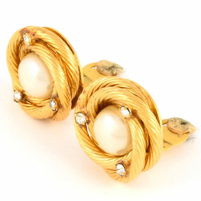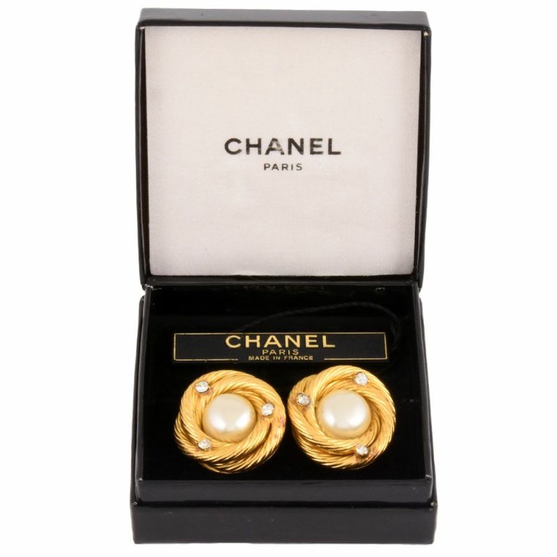 - シャネル CHANEL フェイクパール サークル イヤリング ラインストーン A1900 GP ゴールド金具 レディース ヴィンテージ ラウンド【中古】