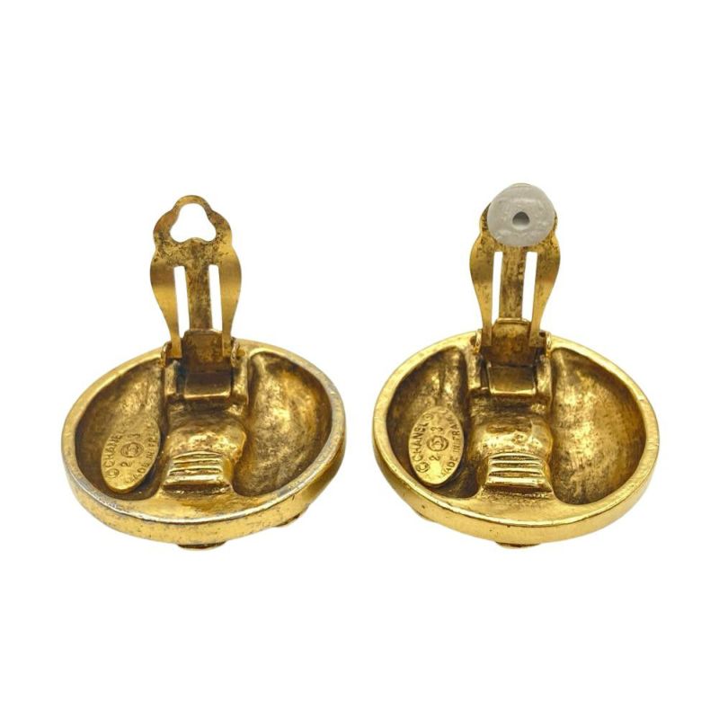 4. シャネル CHANEL ココマーク ラインストーン イヤリング GP ゴールド【中古】