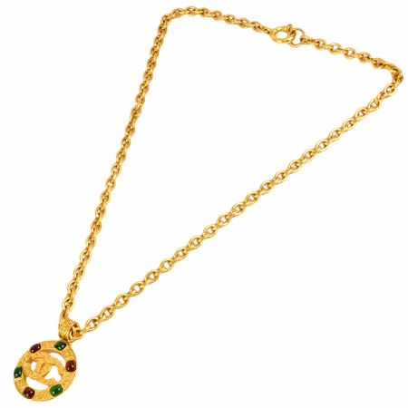 3. シャネル CHANEL ネックレス グリポア ココマーク カラーストーン(レッド・グリーン) 94A ゴールドメタル アクセサリー ヴィンテージ グリポワ【中古】